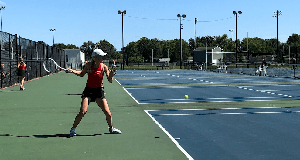 Thomas had advanced to the semifinals early in the afternoon where she faced Casey’s Eva Richardson. Thomas broke service to start the match and led for most of the first set. The wind started to blow during the eighth game, which rendered Thomas’ topspin ineffective. Richardson then took command to win the match, 6-4, 6-1.