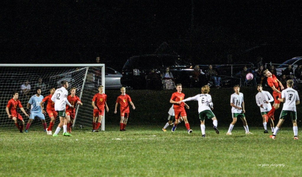 Mattoon defender Mason Wright had the assist for Mattoon’s third goal of the night, off a free kick from near midfield, which Gavin Gonzalez was able to put away.