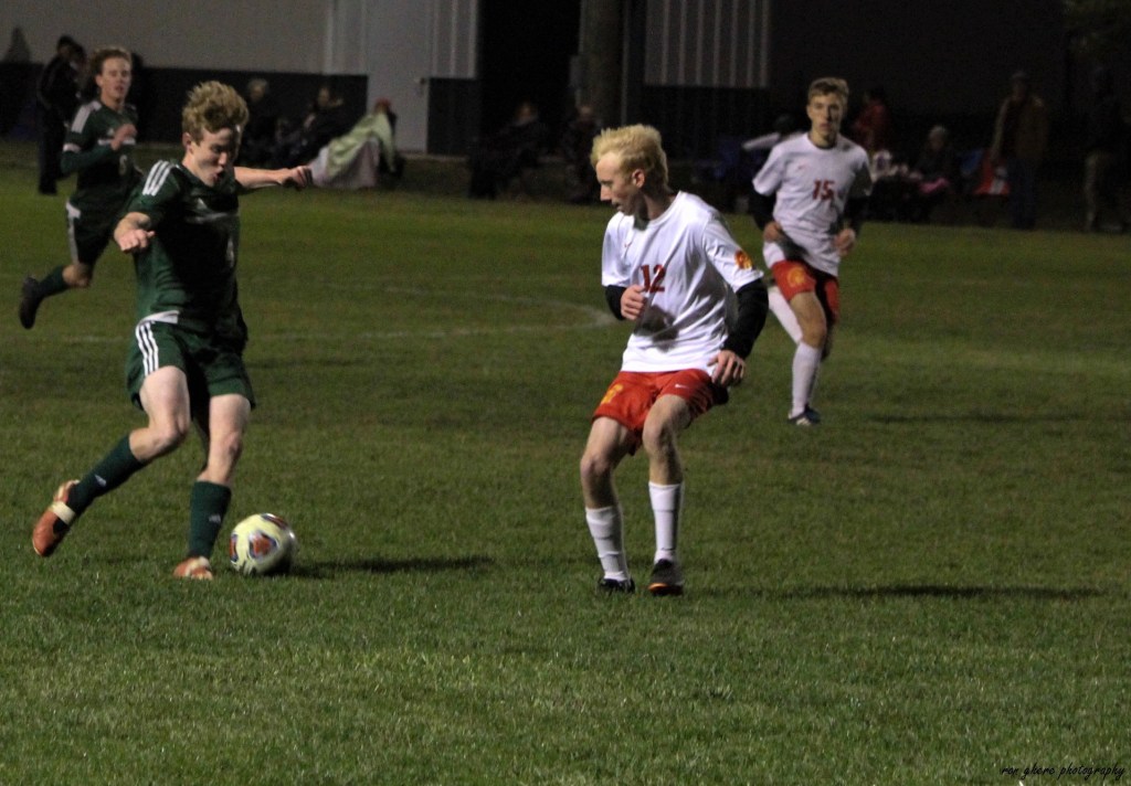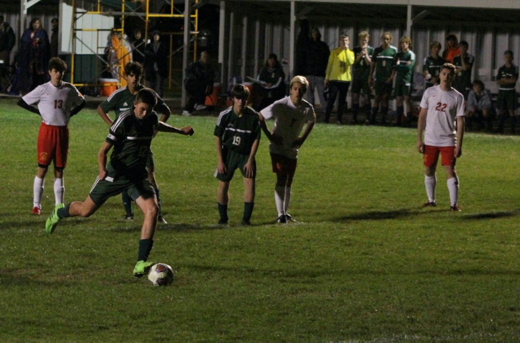 Mattoon’s Zach Diebel opened the scoring in the first half with a deflection off a throw-in from Gavin Gonzalez with three minutes remaining. Diebel was able to get the slightest flick on the ball, and, it was able to get through several players converged near the goal and past Charleston keeper Ben Tresslar.