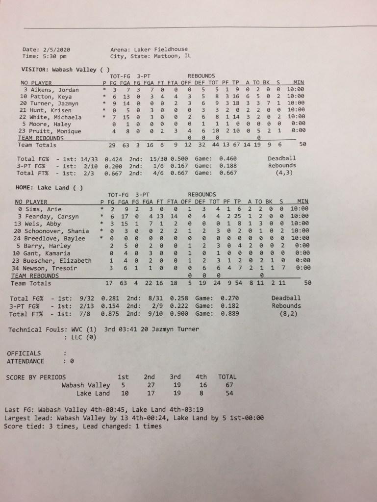 Wabash Valley, meanwhile, made 46 percent of its field goals, including half its shots in the second half – about twice Lake Land’s 25.8 percent rate during that same period.