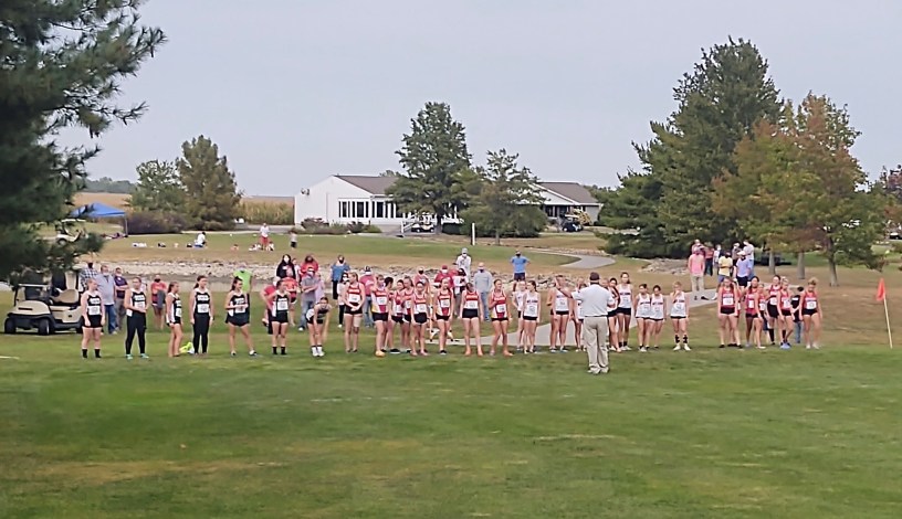 Runners line up for the girls 3-mile race at Meadowview Golf Course.