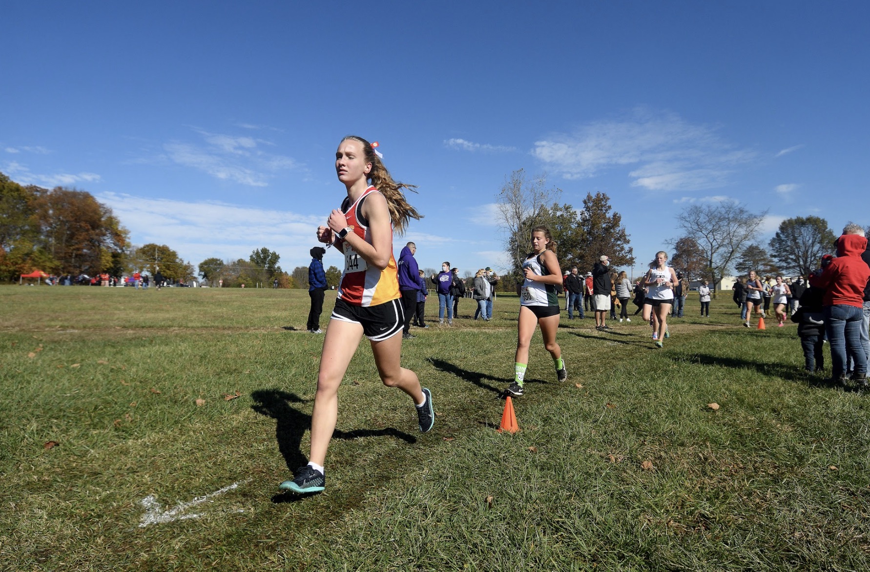 2. Mattoon’s Kylie Haacke runs in the Class 2A Olney cross country sectional Saturday morning. Haacke finished 11th with a time of 19:35.40.
