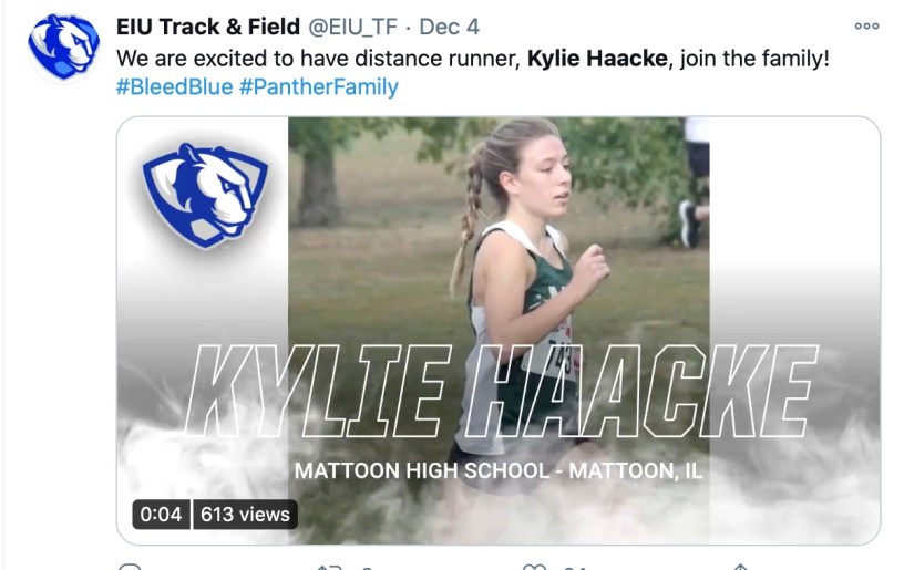 “Coach Erin Howarth started talking to me after my junior cross country season and some of the track season,” said Haacke. “We started talking in March and have been emailing back and forth ever since. I wasn’t too sure about EIU at first. I wanted to get out of Coles county, but after going to different places near and far I figured out that EIU was the one. I think it was the best fit for me for the first four years of college. I am very confident and happy with my decision.”