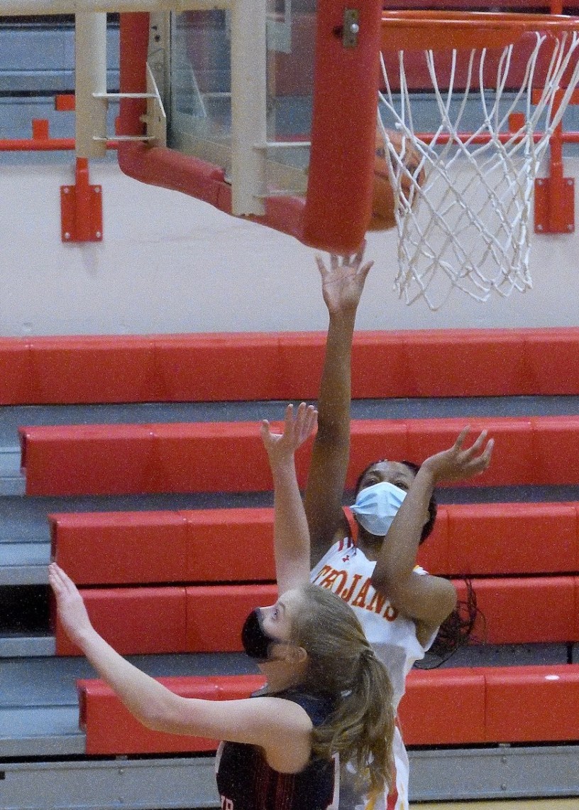 Shae Littleford scored 25 points Saturday to move into second all-time for CHS scoring and Alycia Triplett (above) snagged the second most rebounds in school history, leading Charleston to a 59-36 victory over Stew-Stras.