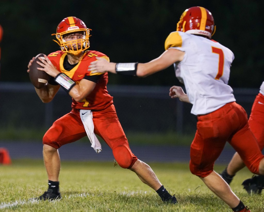 In other Apollo Conference football action, Taylorville beat Mount Vernon 13-0, Mattoon lost to Troy Triad, 26-13, Mt. Zion trounced Bartonville Limestone, 44-13, and Effingham got crushed by St Teresa 42-7.