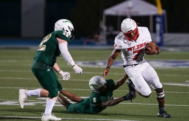Mt. Zion scored 13 points on its first two possessions in the first quarter. Kahee ran in from 10 yards to cap a nine-play, 51-yard drive that took 2:55 to make it 7-0 after the PAT.