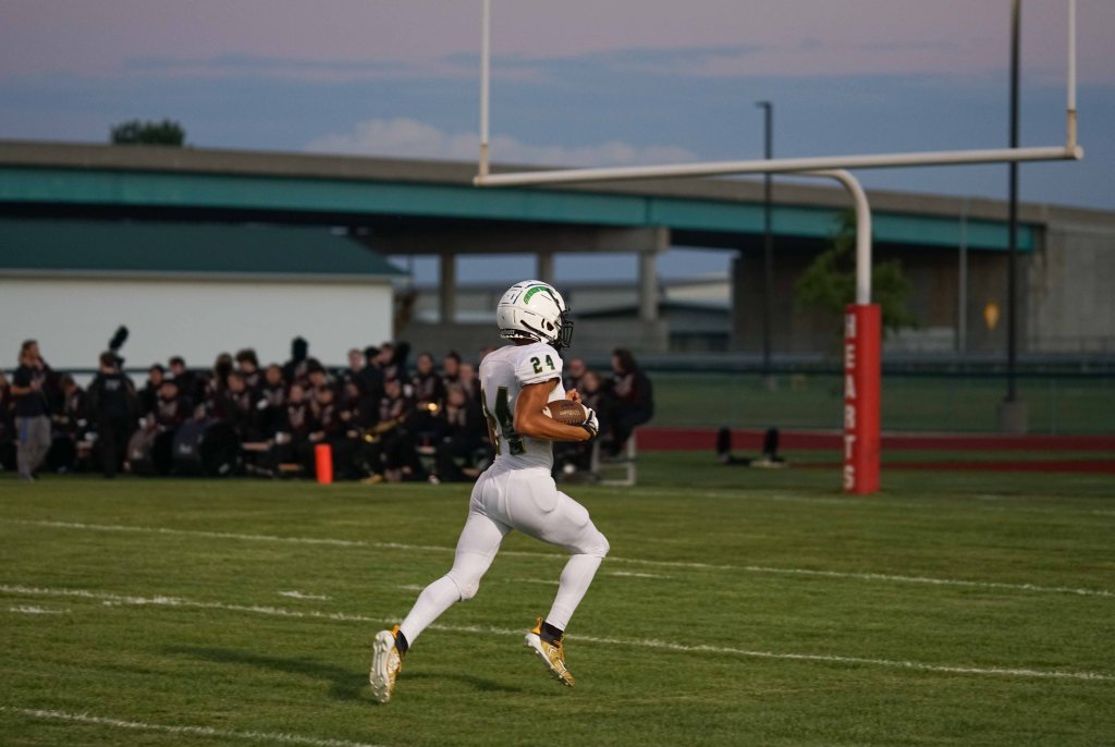 Senior Derrius White runs in an early first quarter touchdown giving Mattoon a 6-0 lead Friday at Effingham High School. (Photo/Dominic Baima)