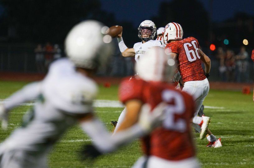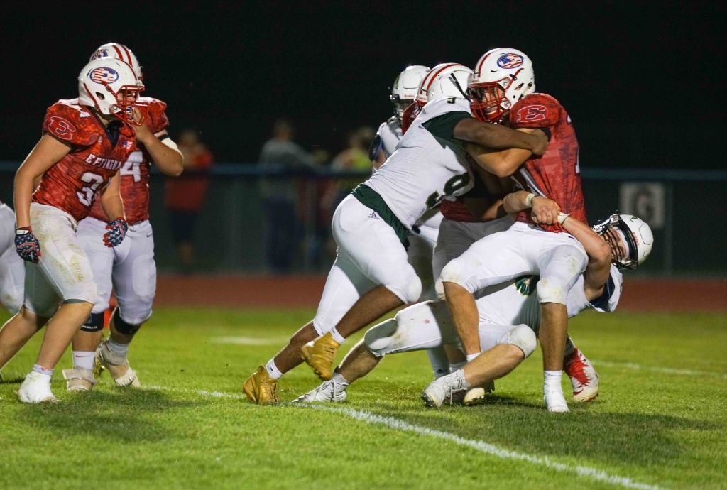 Senior Matthew Gordon is sacked Friday during Mattoon’s 20-14 win over Effingham. (Photo/Dominic Baima)