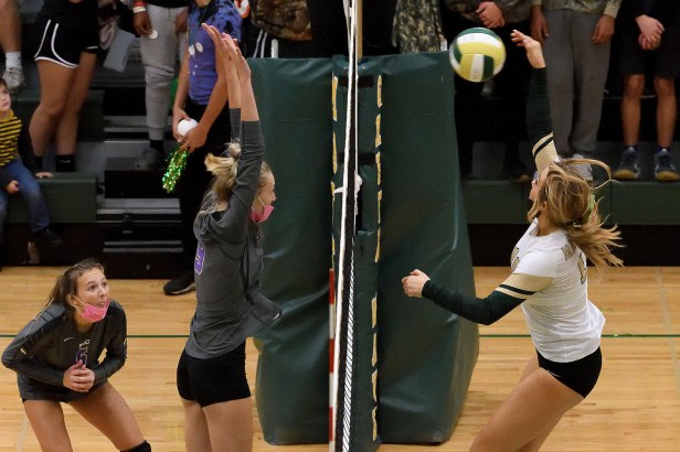 With Mattoon ahead 21-18, Chloe Jobe served two straight points, including an ace, and Averie Smith smashed a kill for a commanding 24-18 advantage. Appropriately, Averie Smith finished with her fifth kill off a set by Bella Smith for the five-point win and two-game sweep.