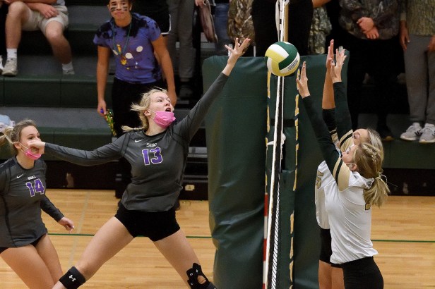 NOTE: The junior varsity also swept Sacred Heart-Griffin, 25-14, 25-17.