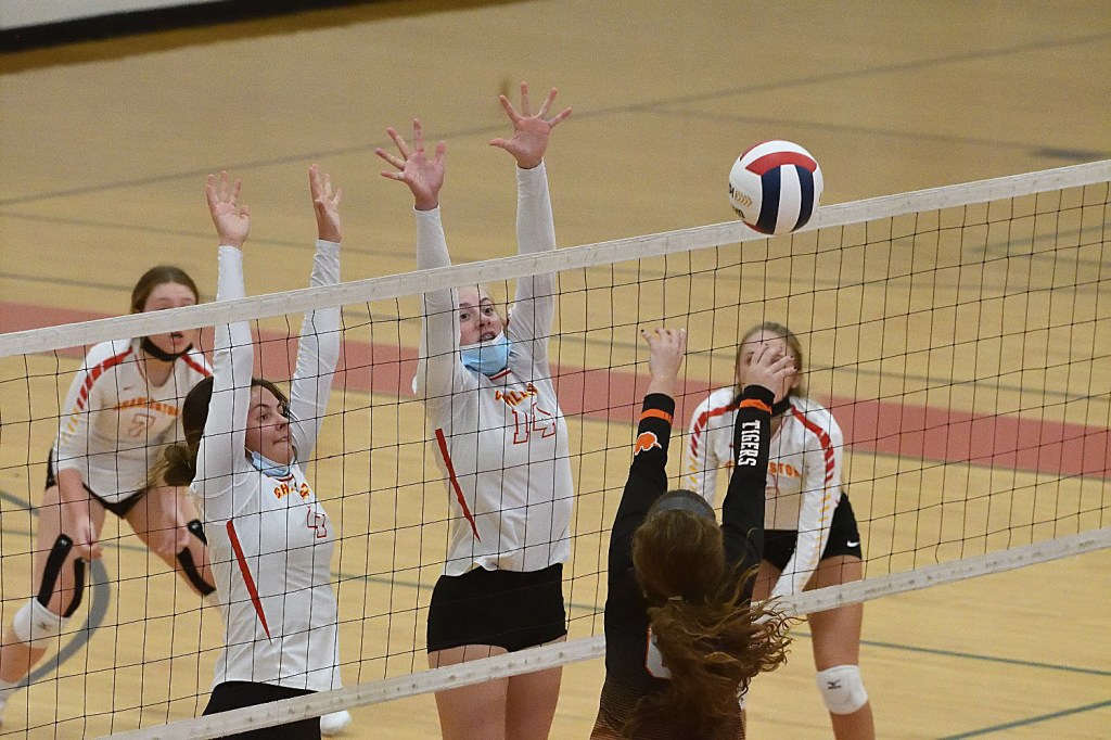 However, in the second set it was all Olney, a member of the Little Illini Conference, who improved to 15-16. The second set was tied just once at three when Olney earned the serve and Allison Harness served five unanswered points, getting help from both a kill by Danielle Brown and two hitting errors by Charleston for a 9-3 Tiger lead.