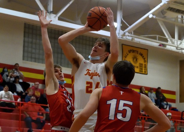 Caleb Oakley made certain of that in the final minutes, scoring five points down the stretch to help the Trojans post a 57-54 boys basketball victory at Baker Gym.