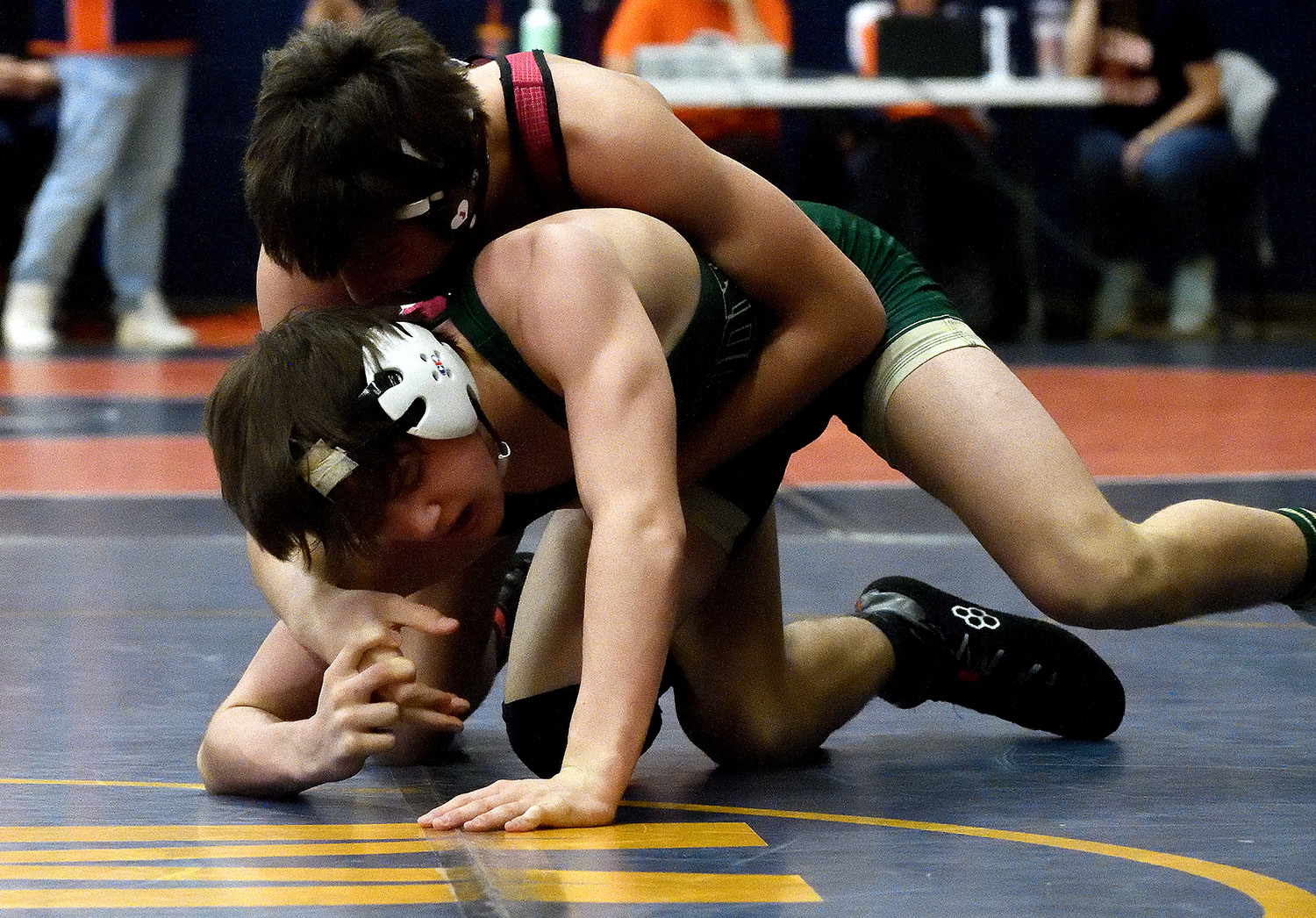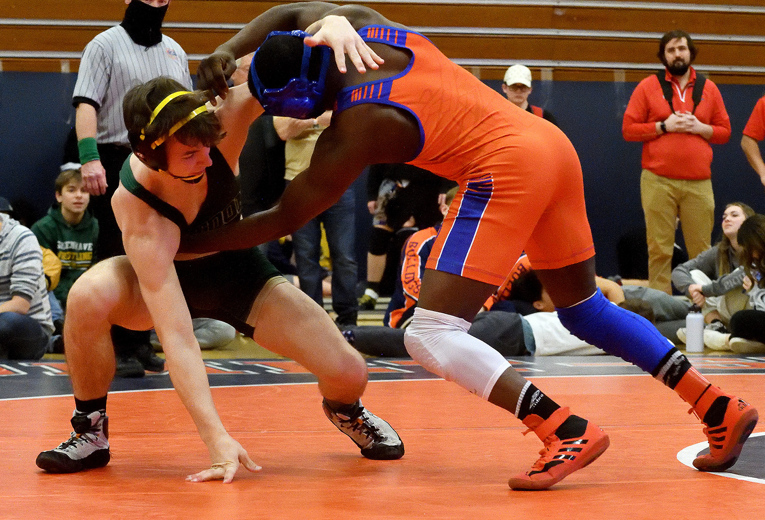 After losing 3-0 to the 195-pound division runner-up in a quarterfinal match, Spurgeon pinned three straight opponents – in 23 seconds, 1:44 and :51 – before posting a 10-4 victory over Carbondale’s Aiden Taylor in the consolation final to earn third place overall.