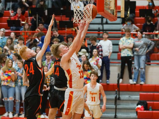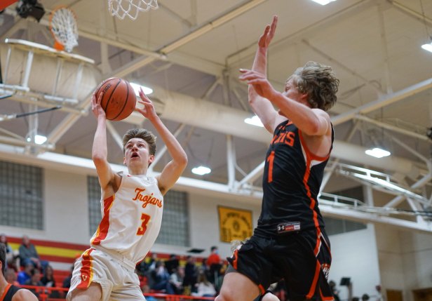 The Trojans held the Tigers to two scoring opportunities in the second quarter – once in the paint and one free throw – to go ahead 29-19 at halftime. Caleb Oakley hit a 3-pointer and a field goal to lead five different CHS scorers during the quarter.