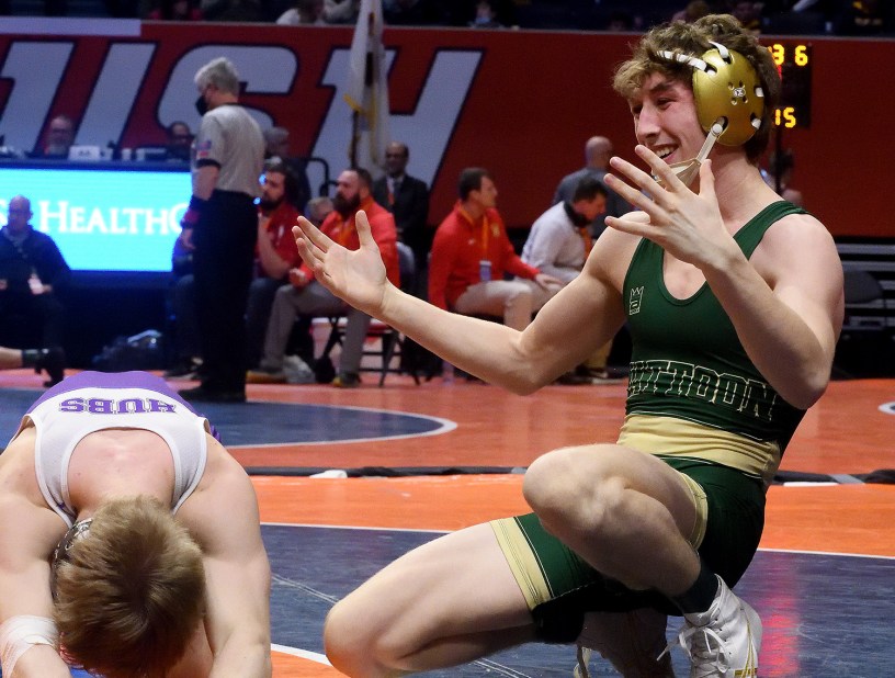 Bateman (36-6) also had to find a way to navigate both his feelings and the consolation field after losing in a semifinal Friday night. The sophomore edged Galesburg’s Rocky Almendarez, 7-6, in the consolation final before losing 6-2 to Caden Muselman in the 126-pound final.