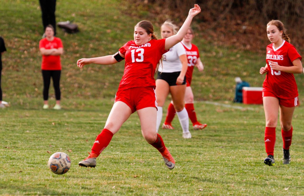 The second Maroons goal came after a throw-in near the left corner of Central’s attacking half. Central’s Grace Pelz pushed the ball up to the goal where Lainey Somers rolled it in.