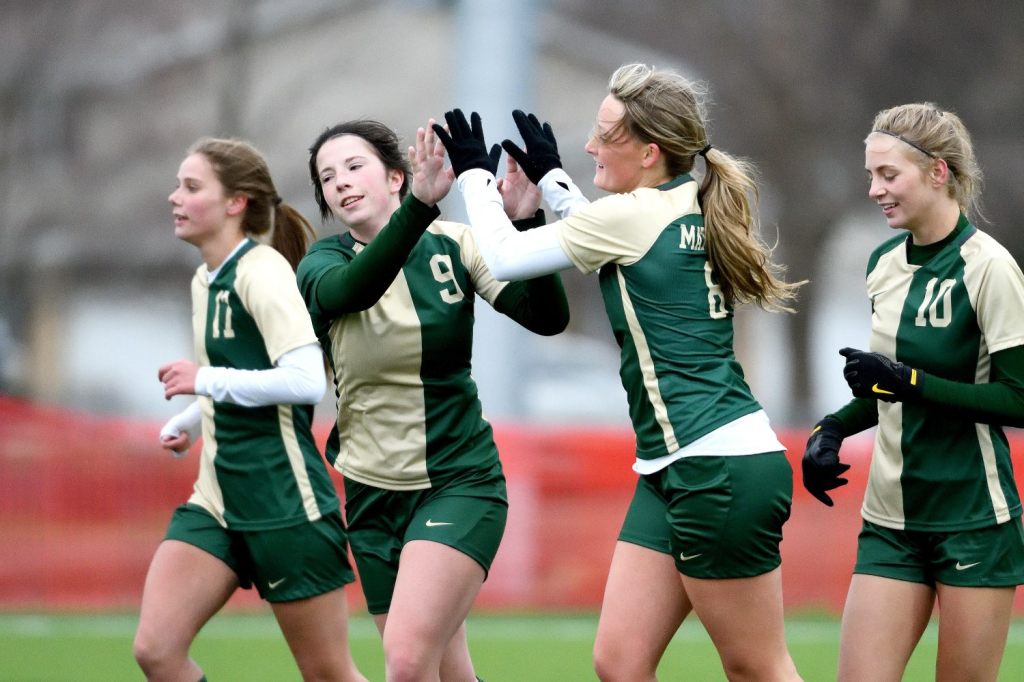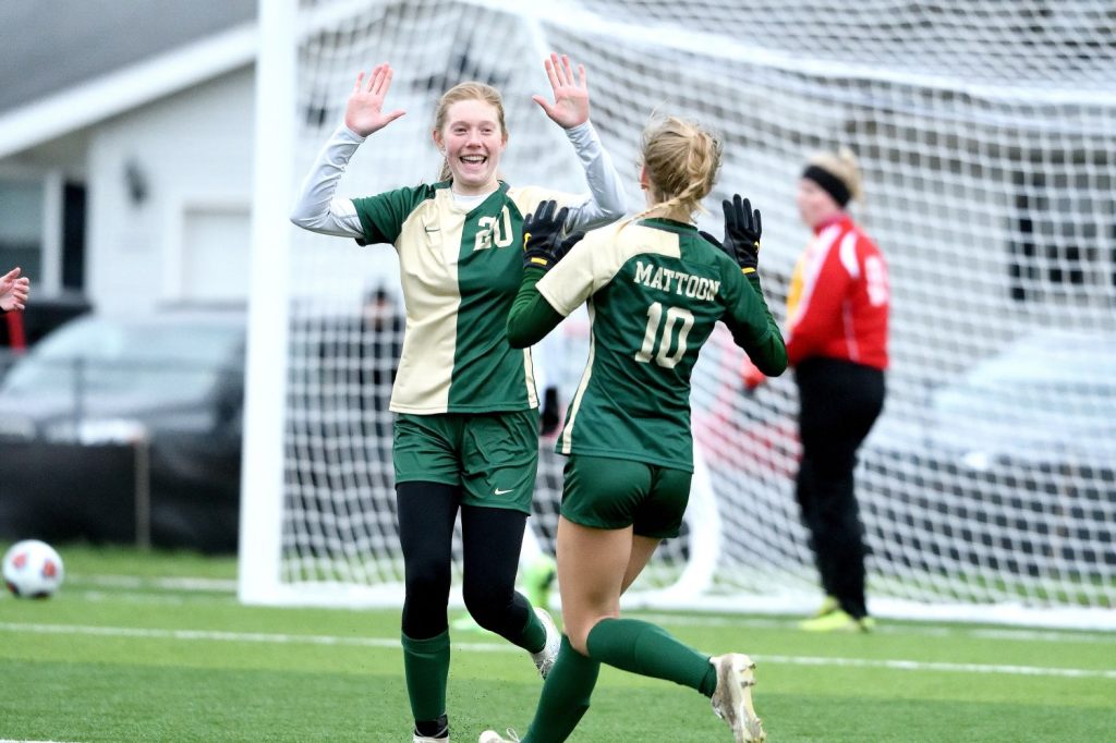 Faith Niebrugge scored the second goal on an assist from Taylor Kovach nine minutes after the first goal and Ghere scored on a free kick for a 3-0 advantage halfway through the first half. After Sanders’ second goal Niebrugge earned her second goal on an assist from Ghere. Masse scored two goals in five minutes, including the last one with less than a minute left in the half for a 7-0 lead.