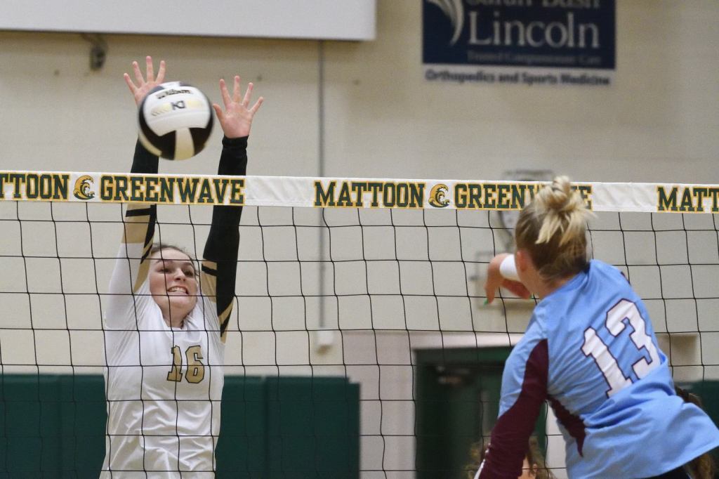 But the Spartans were able to scrape past the Green Wave in the championship match. Mattoon fought back after losing the first set and remained within a point, 12-11, near the end of final abbreviated third set, before losing, 25-14, 20-25, 15-12.