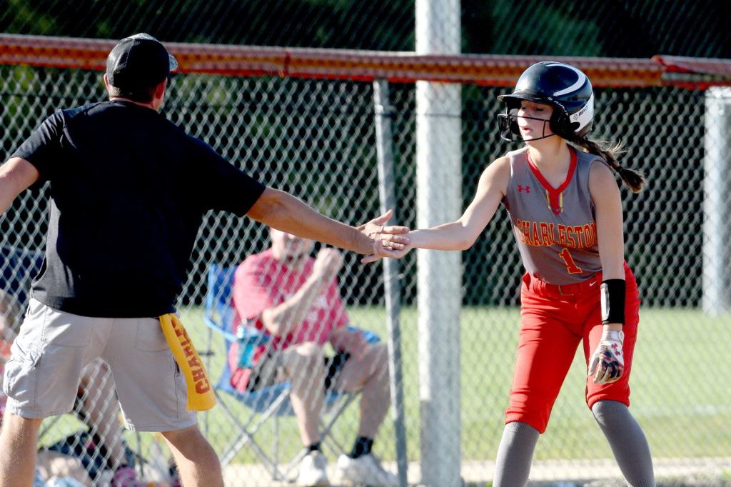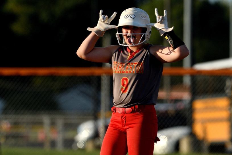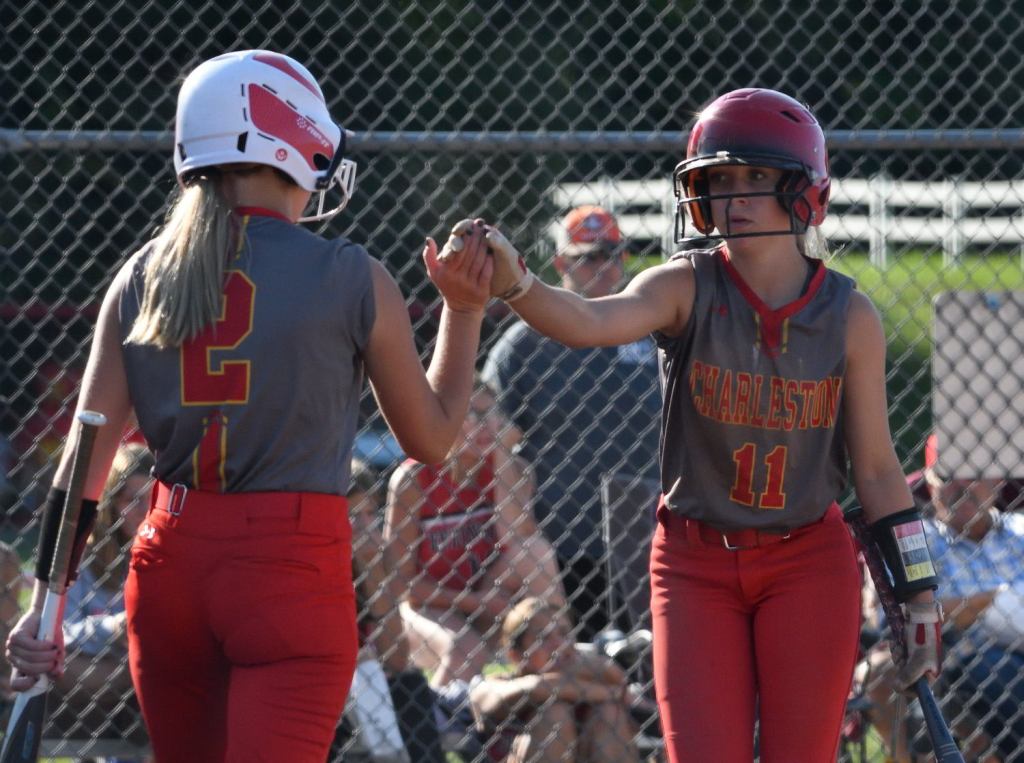 Charleston Middle School’s Meg Ritchey and Rylee Lewis celebrate the end of the fourth inning during the Trojans 12-7 win over Effingham Junior High School during the IESA Class 3A Regional championship at Charleston Tuesday afternoon.Charleston Middle School’s Taylor Rook lays down a bunt during the Trojans 12-7 win over Effingham Junior High School during the IESA Class 3A Regional championship at Charleston Tuesday afternoon.Charleston Middle School shortstop Lainie Keefer throws to first during the Trojans 12-7 win over Effingham Junior High School during the IESA Class 3A Regional championship at Charleston Tuesday afternoon.Charleston Middle School’s Raylin Cox tags Effingham Junior High School’s Tessa Raddatz during the Trojans 12-7 win over Effingham Junior High School during the IESA Class 3A Regional championship at Charleston Tuesday afternoon.Charleston Middle School’s Meg Ritchey connects on a hit during the IESA Class 3A Regional championship at Charleston Tuesday afternoon. Ritchey went 3-for-3 with 4 rbi.Charleston Middle School second baseman Taylor Rook looks to turn a double play during the Trojans 12-7 win over Effingham Junior High School during the IESA Class 3A Regional championship at Charleston Tuesday afternoon.Charleston Middle School’s Raylin Cox fires a pitch to an Effingham Junior High School batter during the Trojans 12-7 win over Effingham Junior High School during the IESA Class 3A Regional championship at Charleston Tuesday afternoon.Charleston Middle School’s Rylee Lewis lays at home plate after colliding with Effingham Junior High School’s Keagyn Koenig during the Trojans 12-7 win over Effingham Junior High School during the IESA Class 3A Regional championship at Charleston Tuesday afternoon.Charleston Middle School head coach Blaine Mayhall high fives Rylee Lewis during the Trojans 12-7 win over Effingham Junior High School during the IESA Class 3A Regional championship at Charleston Tuesday afternoon.Charleston Middle School’s Ella Price and Lainie Keefer high five after Keefer scored during the Trojans 12-7 win over Effingham Junior High School during the IESA Class 3A Regional championship at Charleston Tuesday afternoon.Charleston Middle School’s Raylin Cox drives the ball during the Trojans 12-7 win over Effingham Junior High School during the IESA Class 3A Regional championship at Charleston Tuesday afternoon.