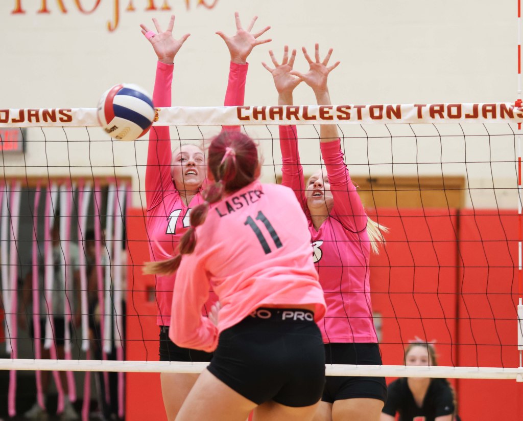 “I am really proud of the effort they had,” said first-year Charleston coach Nicole Beals. “I am glad we were able to have such a big crowd to play in front of and I am glad we were able to raise over $4,700 for breast cancer research. We look forward to it every year.”