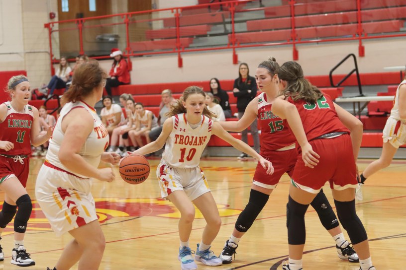 Freshman Maci Babbs scored a team-high eight points for the Trojans while Annie Logsdon added seven points.