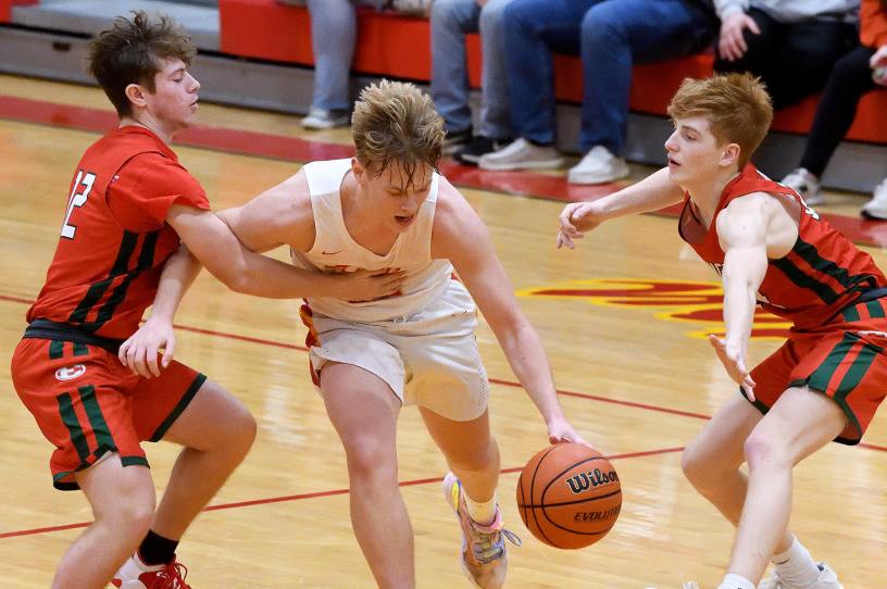 However, Dixon scored 12 unanswered points starting with a 3-pointer by Wyatt Wetzel, who led the Dukes with 14 points. Darius Harrington ended the opening quarter with a 12-footer. Harrington’s basket with 4:46 left in the half made it 22-12 before James Hess ended the run with a pair of free throws. Matthew Warkins ended the scoring in the half with a putback with just under a minute left for a 29-19 lead for Dixon.