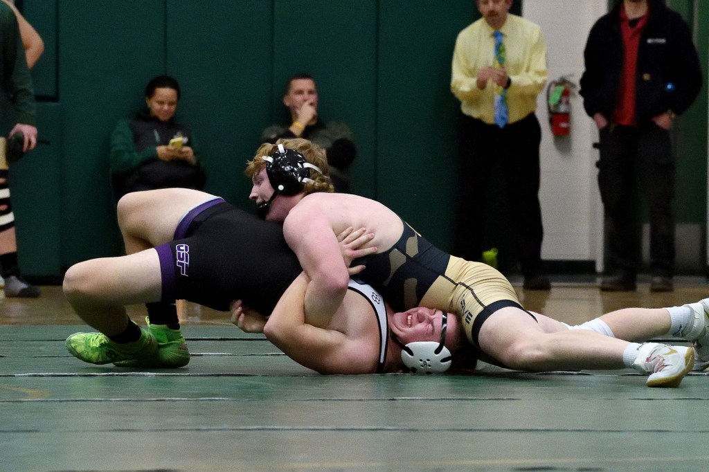 Mattoon’s four senior wrestlers took care of business on senior night winning seven of eight bouts – six by pin – in losing to Oakwood, 39-33, in the first match and winning, 60-22, in the third match of tri-meet Tuesday evening at MHS.