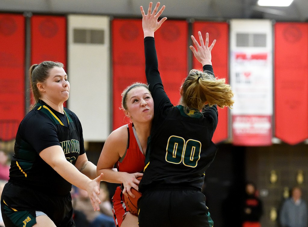 Orris took a pass down at the post, held the ball back drawing a foul from John Wood’s Mykaela Elliott, before taking a clean shot that barely missed going in. Orris made one of two free throws putting Lake Land up 41-28.