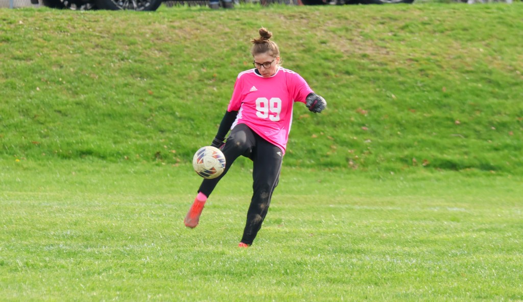 Charleston’s Ally Logsdon made 12 saves Thursday night but she could not hold off the onslaught from Mahomet, which scored eight goals in an 8-0 victory in girls soccer at Paul Stranz Field.