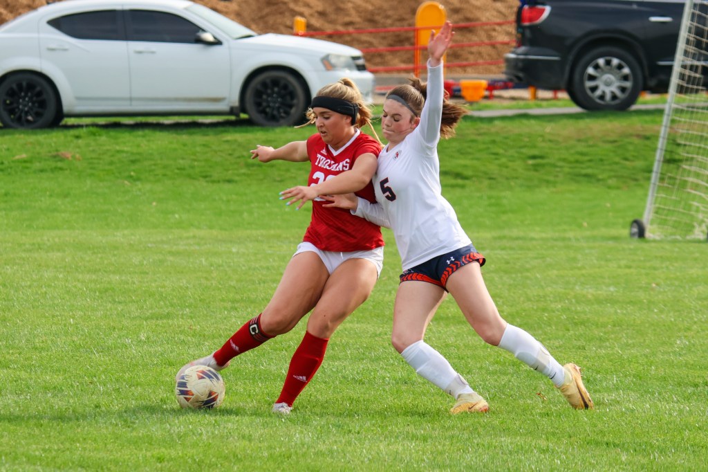 Sophomore goalie Ally Logsdon kicks the ball Thursday.Charleston senior Delaney Meister battles for the ball Thursday.Charleston senior Shelby Herrington stops the ball Thursday.Charleston junior Ella Garrett kicks the ball Thursday at Paul Stranz Field during Charleston’s 8-0 loss to Mahomet-Seymour.Charleston sophomore Hadley Webb is pressured by Mahomet-Seymour senior Kallie Stutsman Thursday while she moved the ball toward the goal.