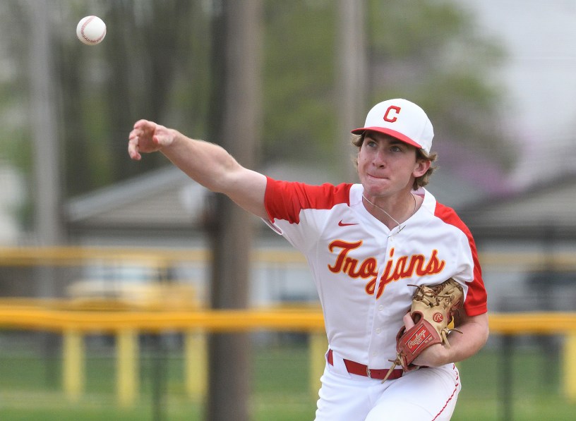 The right-hander was dominant in the second game of an Apollo Conference doubleheader Saturday, pitching six innings, allowing two runs on seven hits with a walk and two strikeouts to lead the Trojans past Mahomet-Seymour, 6-5, and earn a split at Baker Field.